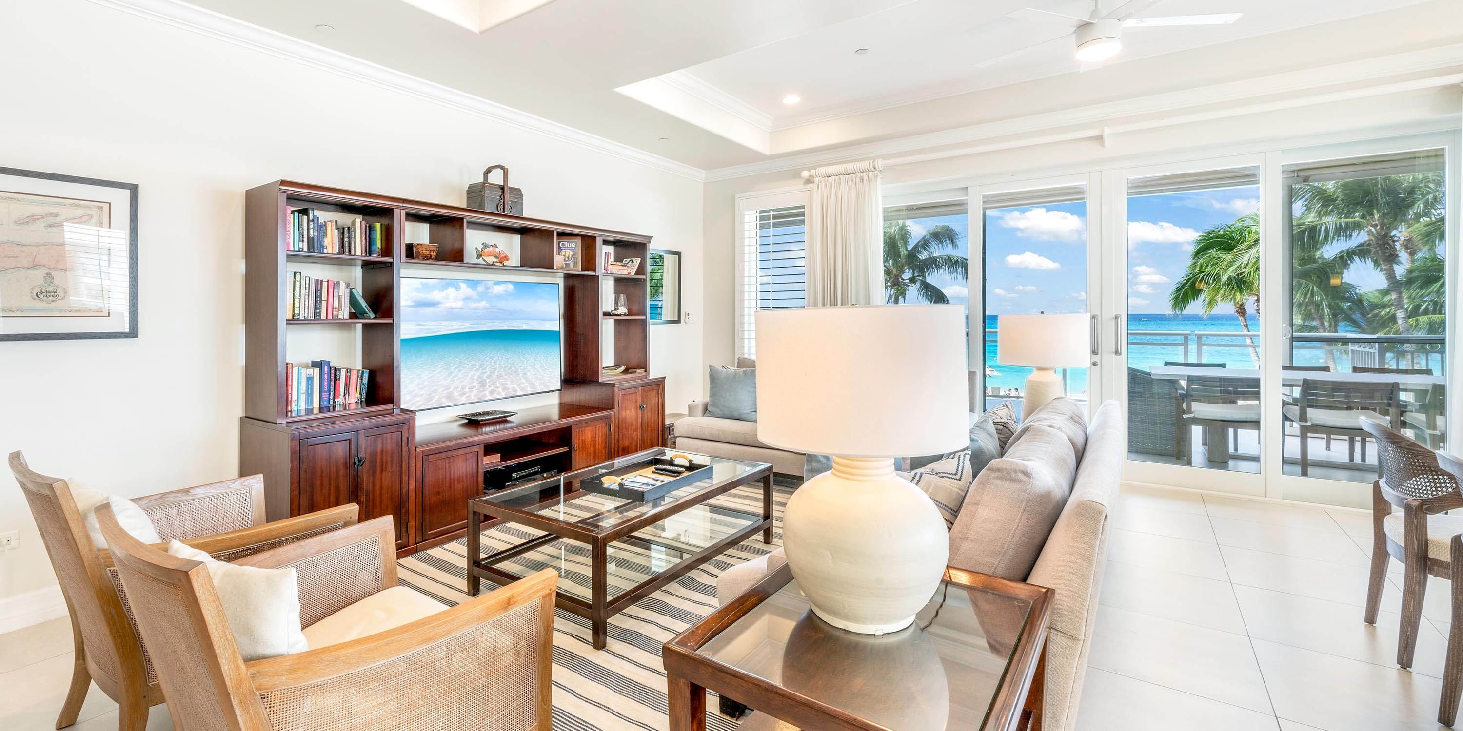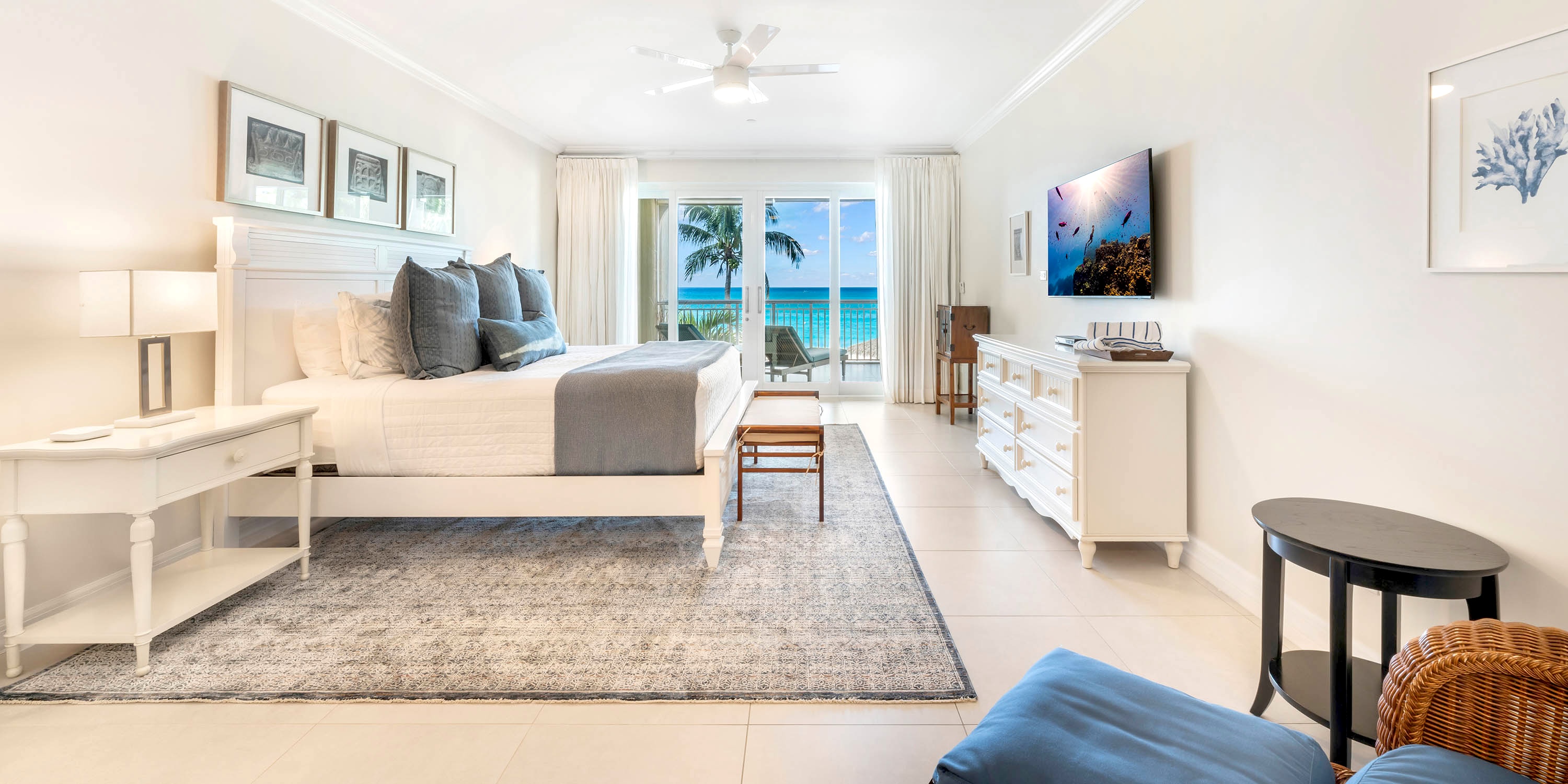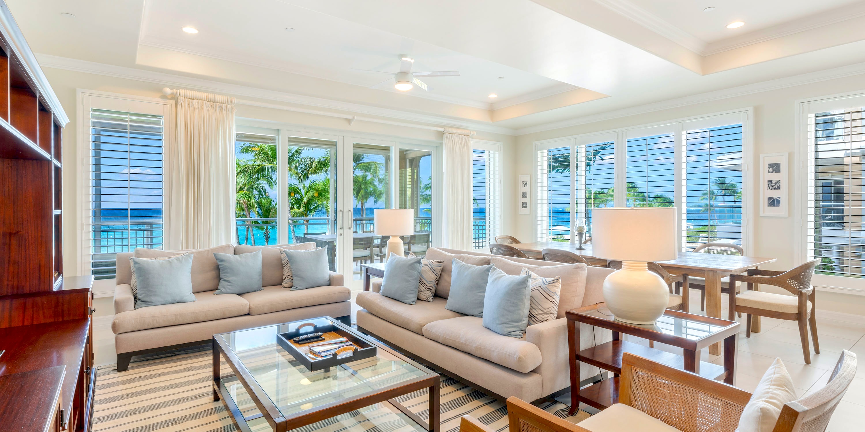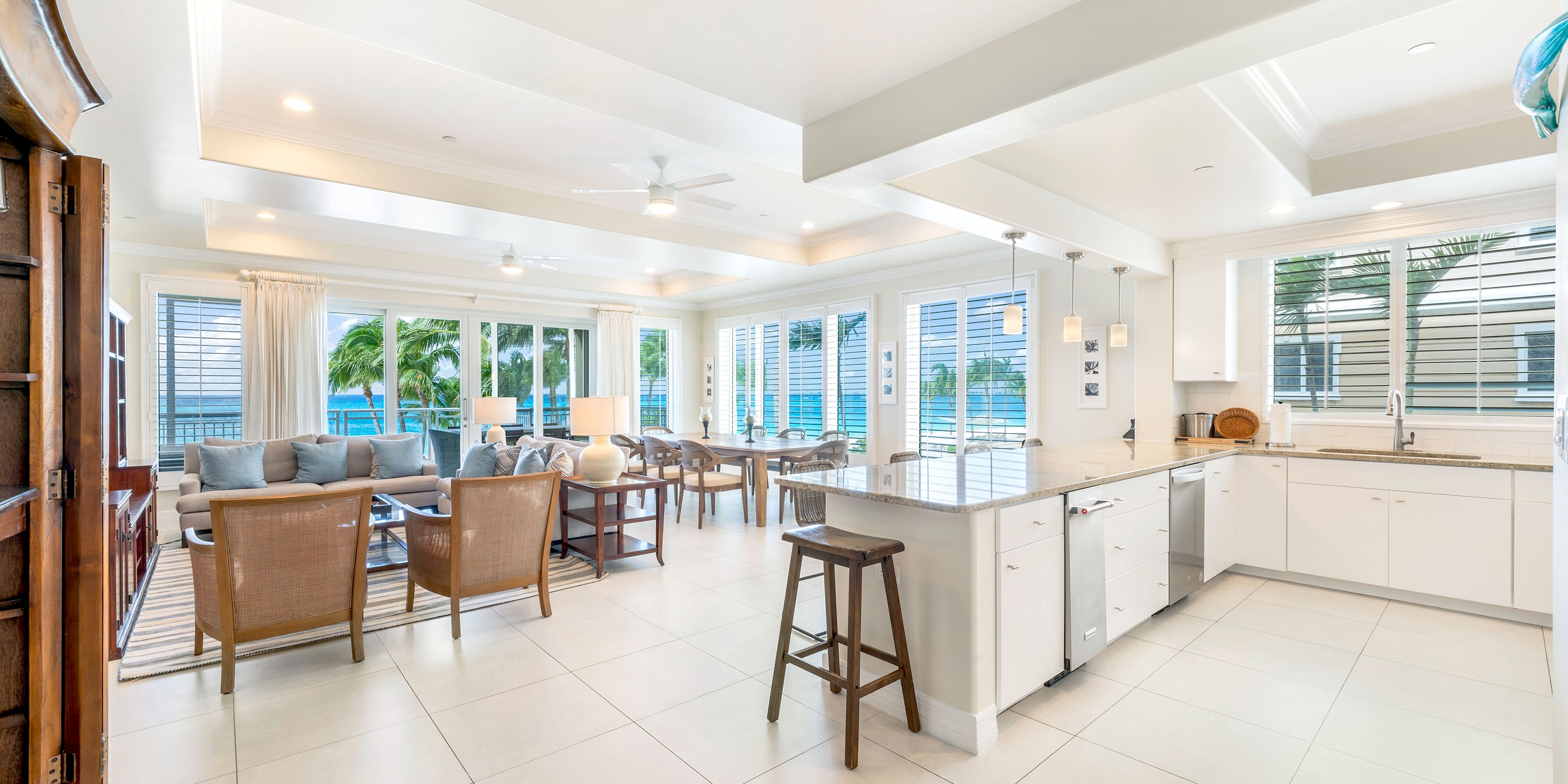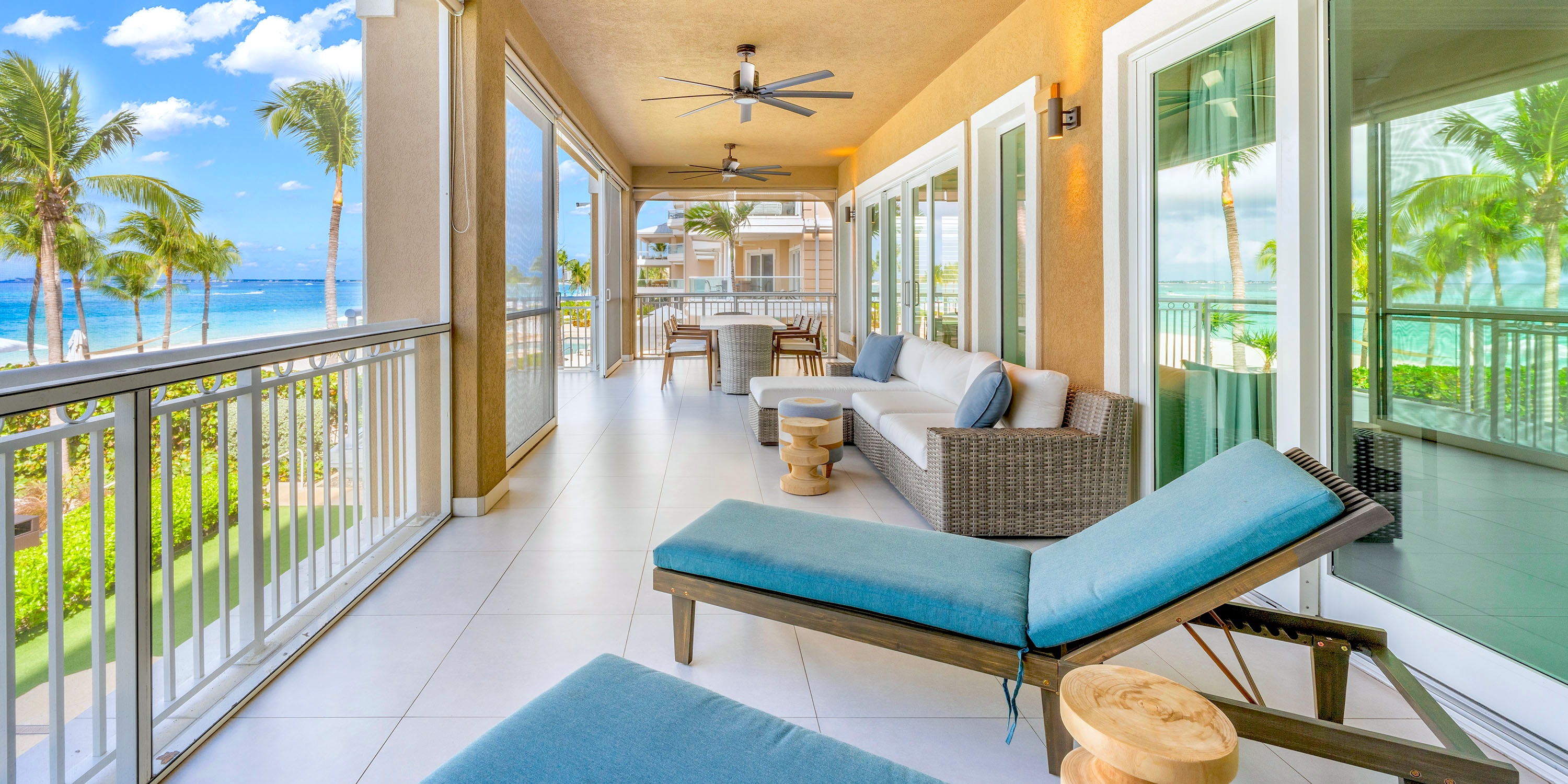 Each unit comes furnished with either a spacious oceanfront patio or a balcony. Ground floor units enjoy walk-out access from the patio to the pool deck and beach--very convenient! The upper floors, however, enjoy elevated balcony views of beautiful Seven Mile Beach.