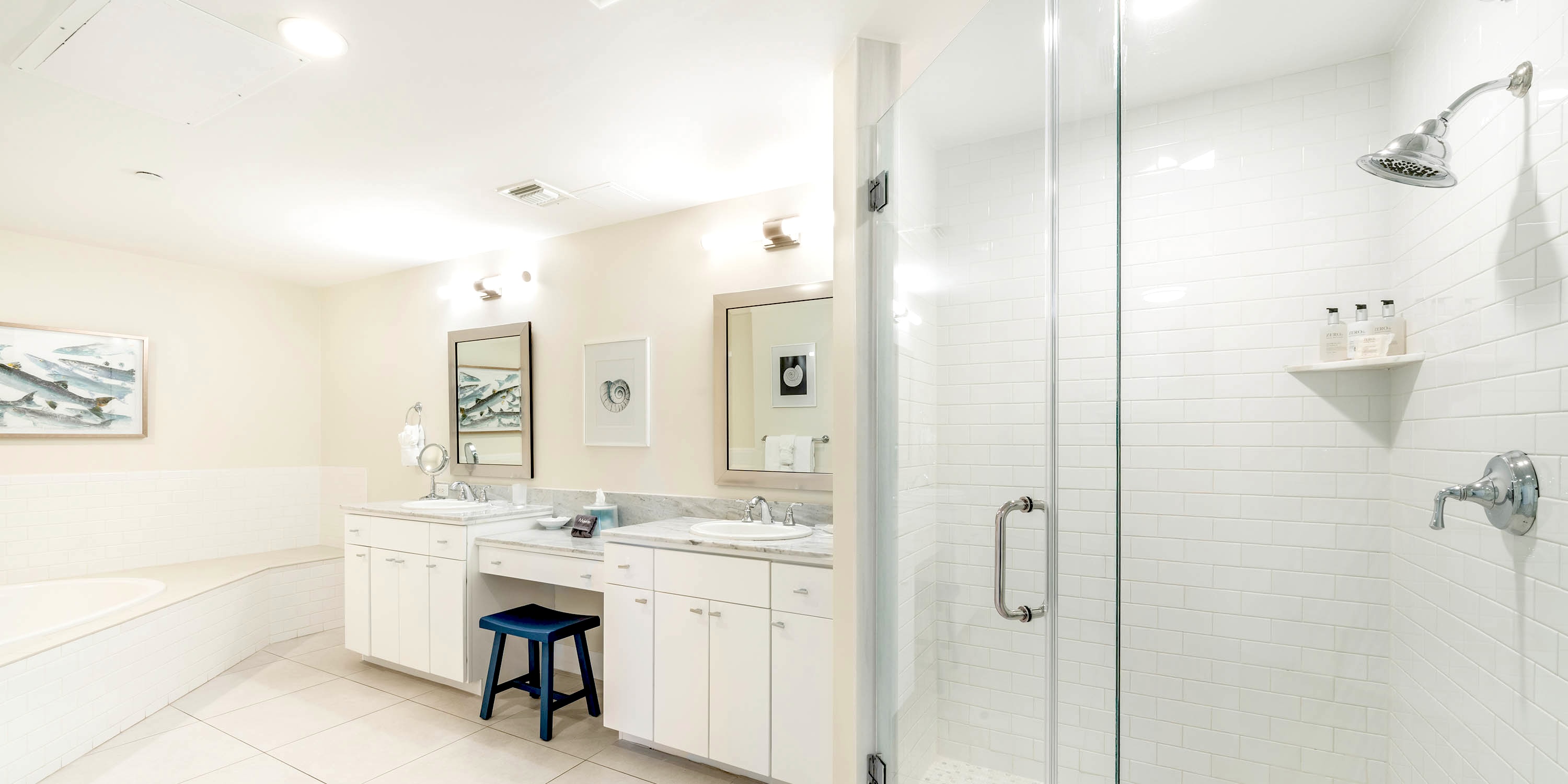 - Primary Suite - king bed, oceanfront, walk-out access to the balcony, ensuite with double vanity, soaking tub, and shower.