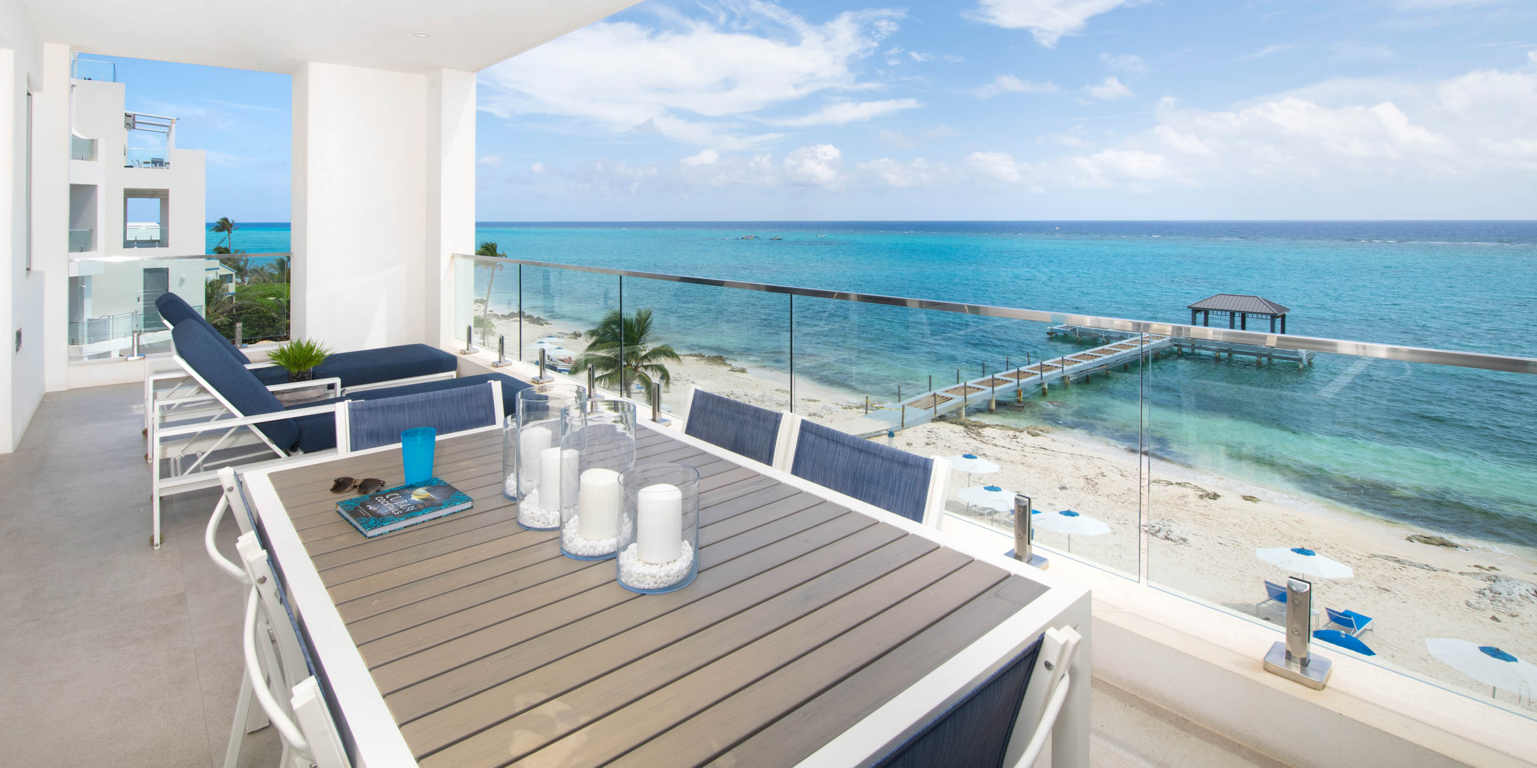 All Rum Point Resort condos feature sleek finishes, designer decor, and an open-concept layout maximizing space, natural light, and stunning ocean views. All the comforts of home are included in this 2,250 sq. ft. 3-bedroom condo including gourmet kitchen appliances, quartz countertops, SmartTVs, and a private oceanfront balcony.